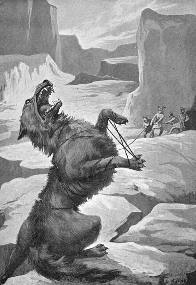 アース神族の策略によってグレイプニルで拘束されたフェンリルは、ゲルギャという留め具で巨大な岩ギョッルに固定されて地中深くに封じられました。